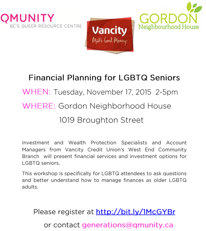 Free tickets: https://www.eventbrite.ca/e/financial-planning-for-lgbtq-seniors-tickets-19216960446